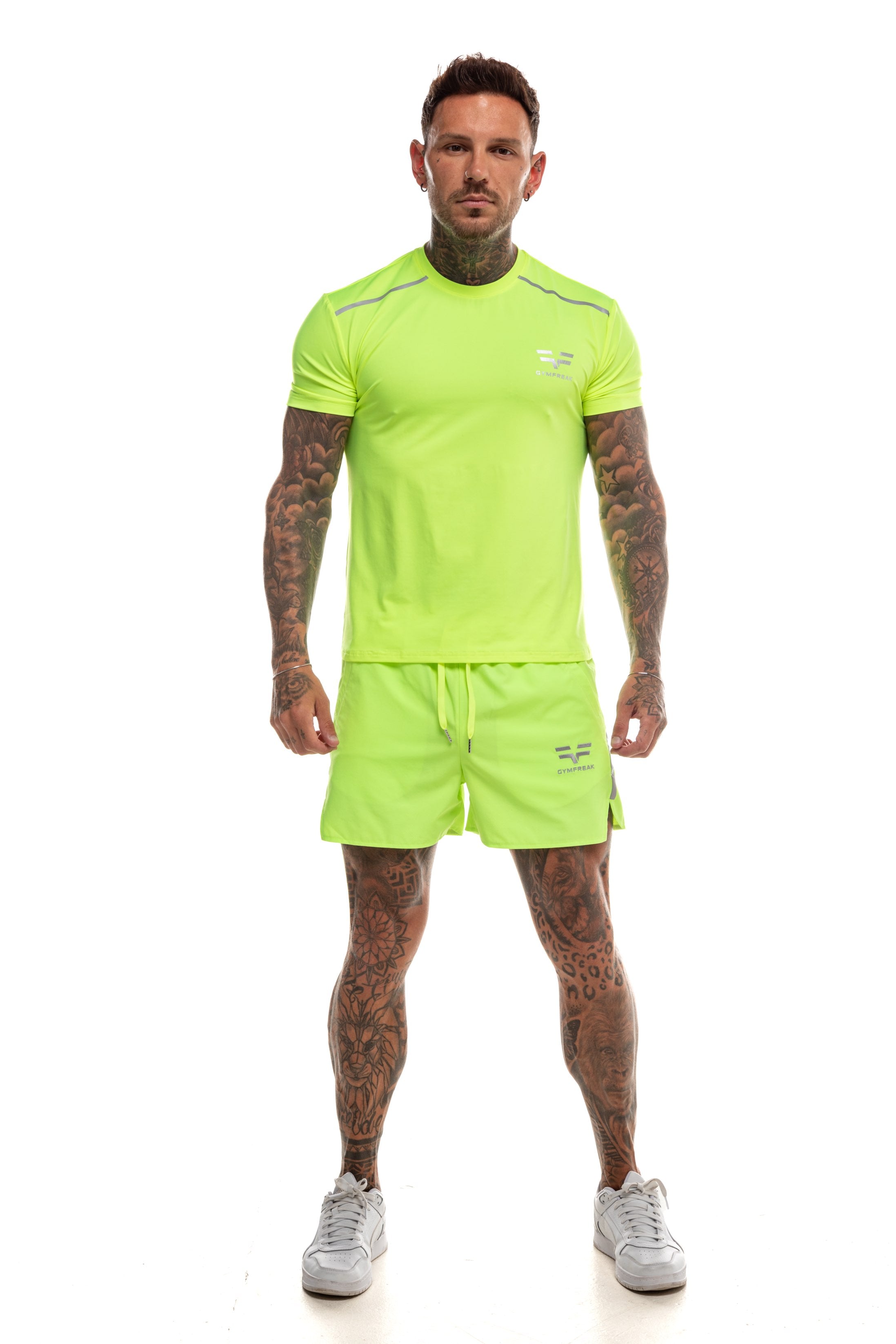 GymFreak Mens Neon Fusion Shorts - Neon Yellow - 3.5 inch